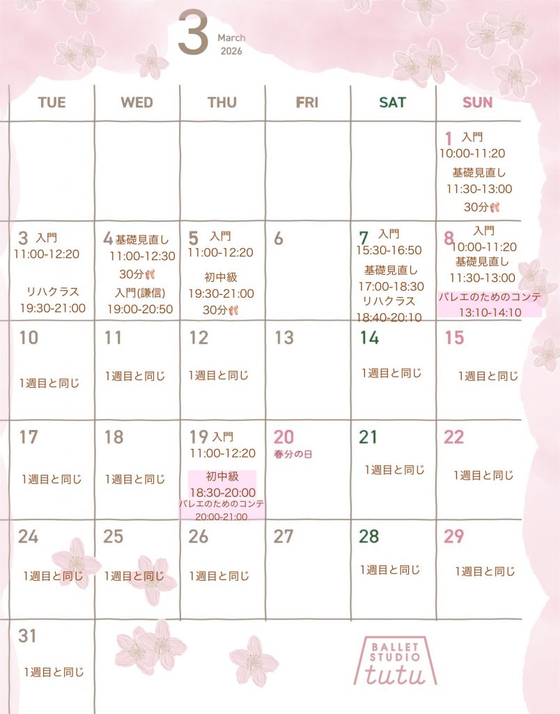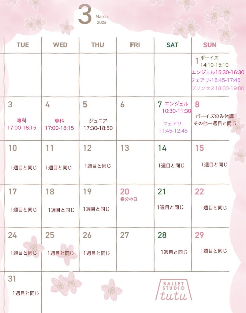 3月のスケジュールをお伝えさせていただきます。まずはキッズです👧🏻🩰👦🏻