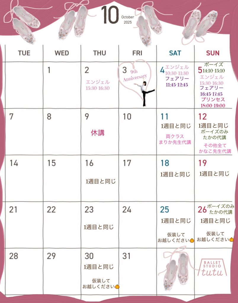 10月のスケジュールをお伝えさせていただきます✨ついに10/3で9周年!