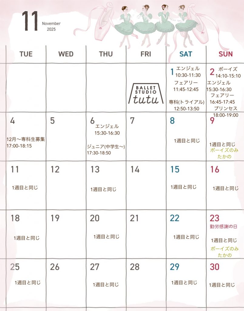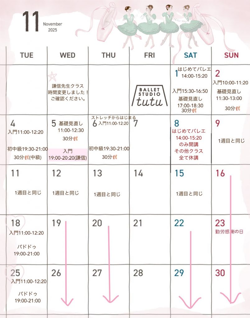 11月のスケジュールとキッズクラスのお知らせをさせていただきます✨